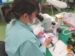 1963年の創業以来培ってきた職人技を駆使した「ものづくり」を通して、現代社会に不可欠な医療機器の製造を支えながら社会に貢献しています。なかでも顕微鏡を使用した医療機器の組立(超微細半田付け加工を含む)を最も得意としており、約160機種の超音波診断装置用プローブ(探触子)の製造実績がございます。