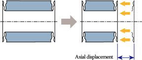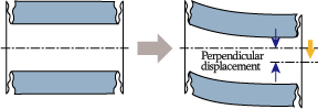 Both end surfaces of bellows is made parallel. Perpendicular displacement refers to the length difference keeping the end surfaces parallel.