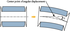 Angle displacement refers to the angle difference of axis before and after being applied some load. In this case, the bellows could deform in axial and perpendicular direction so the combination of axial and perpendicular displacement must be considered.